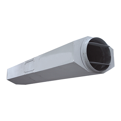 conçu pour l’extraction d’air et de fumées dans les parkings et espaces ouverts. Compact et silencieux, il offre un haut rendement grâce à son ventilateur axial et ses silencieux intégrés. Disponible en version unidirectionnelle ou réversible, certifié APPLUS EN 12101-3:2015.