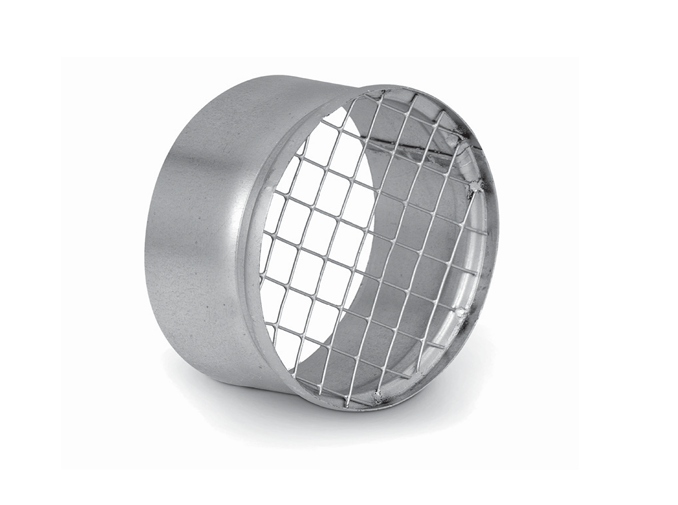 Le manchon de raccordement avec grille est utilisé pour fermer les chaînes de ventilation. Il possède une grille en fil galvanisé ayant un diamètre de 1,05 mm et un treillis de 12,7 x 12,7 mm protégeant contre la contamination de l’extérieur. Il est fait en tôle galvanisée.