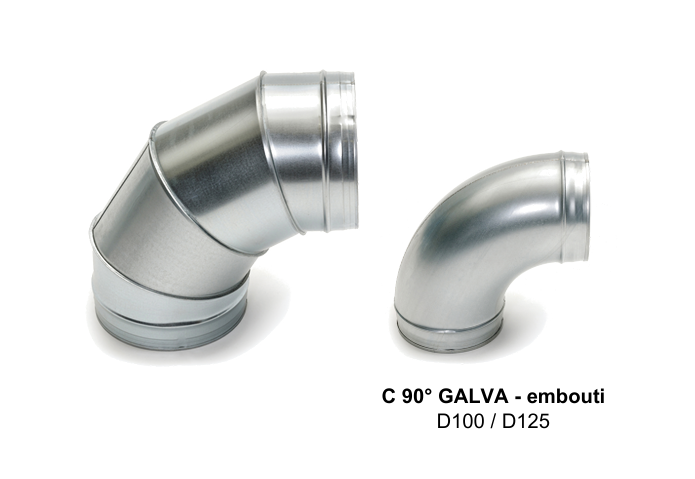 Coudes à 90° en acier galvanisé embouti, assurant une parfaite étanchéité et une résistance optimale pour vos installations de ventilation.