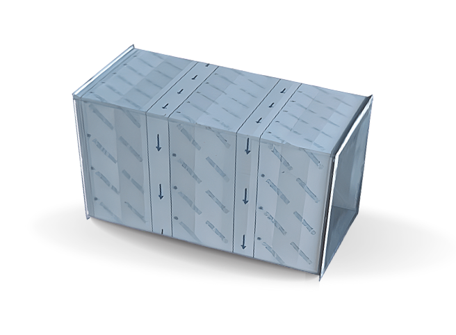La gaine rectangulaire avec cadres en tôle sur ses extrémités renforcée par l’ondulation transversale de tôle.