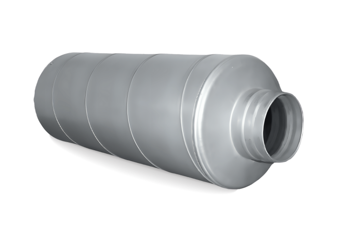 Des silencieux standard sont livrés avec l’étanchéité du système spirale. Les diamètres d,> 315 mm. A l’intérieur la laine de verre d’épaisseur.